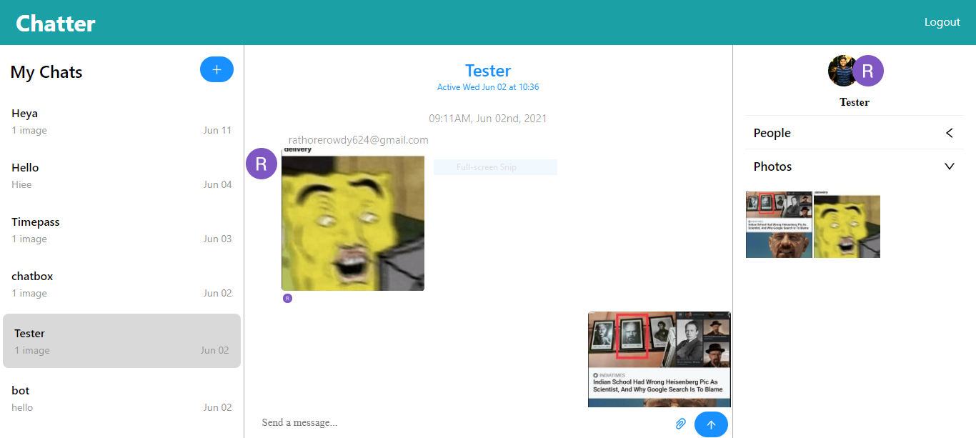 This Application is made using React and Chatengine.io API. The chat Application allows you to create a chat with your friends and families and allows you to send messages and media.